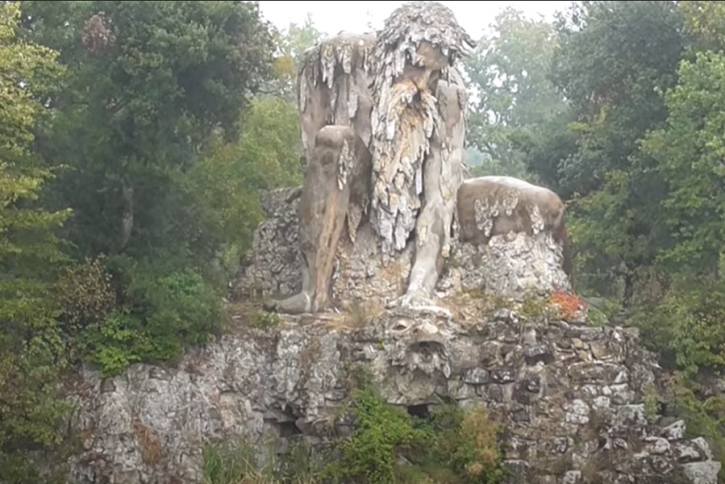 Υπάρχουν σπήλαια και κρυμμένα περάσματα μέσα στον Κολοσσό, ο οποίος ήταν δώρο για την ερωμένη ενός Δούκα στα 1500. Ένα από τα δωμάτια περιλαμβάνει ακόμη και τζάκι που, όταν ανάβει, βγαίνει κανπνός από τη μύτη του αγάλματος. Προφανώς, υπάρχει επίσης χώρος για ορχήστρα και, σε ένα σημείο, υπήρχε λειτουργικό υδραυλικό σύστημα που αντλούσε νερό από το στόμα του ψαριού που κρατάει ο γίγαντας.