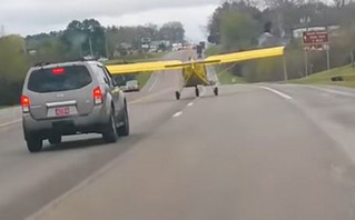 Η στιγμή που αεροσκάφος προσγειώνεται και κινείται σε αυτοκινητόδρομο